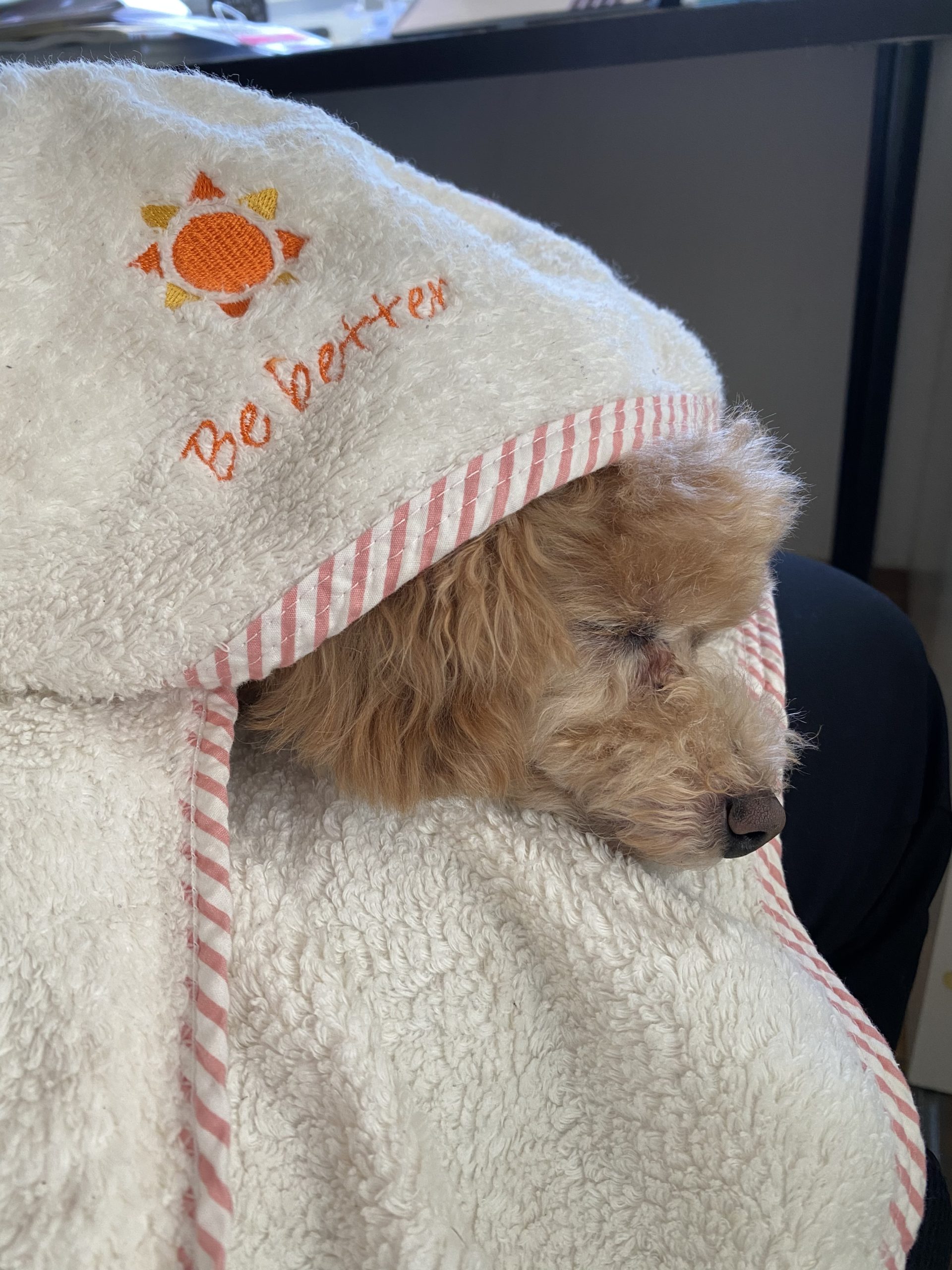 こうやって僕の膝の上(特等席)で優しいおくるみにくるまってスヤスヤ。